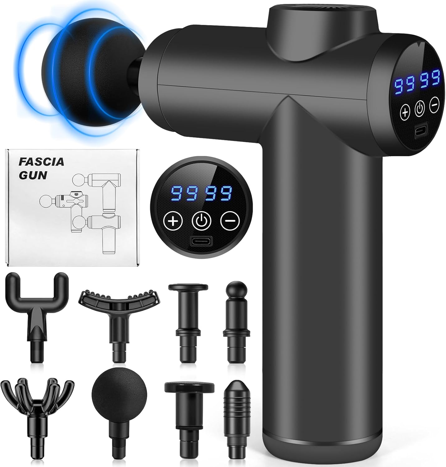 - 6 cabezales intercambiables – Diseñados para diferentes grupos musculares y tipos de masaje.